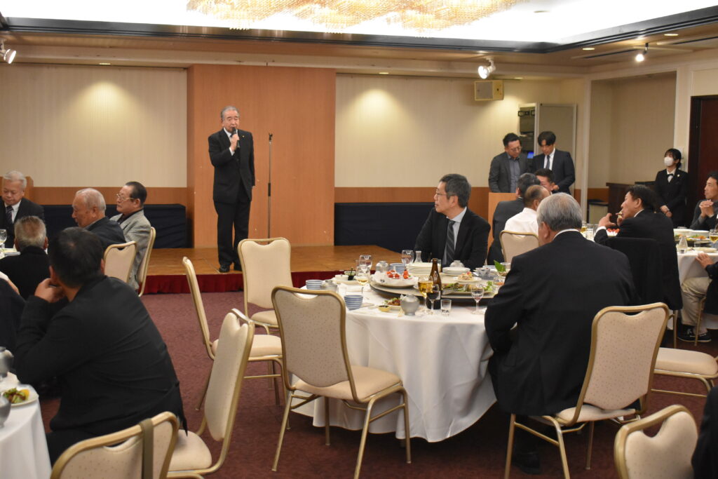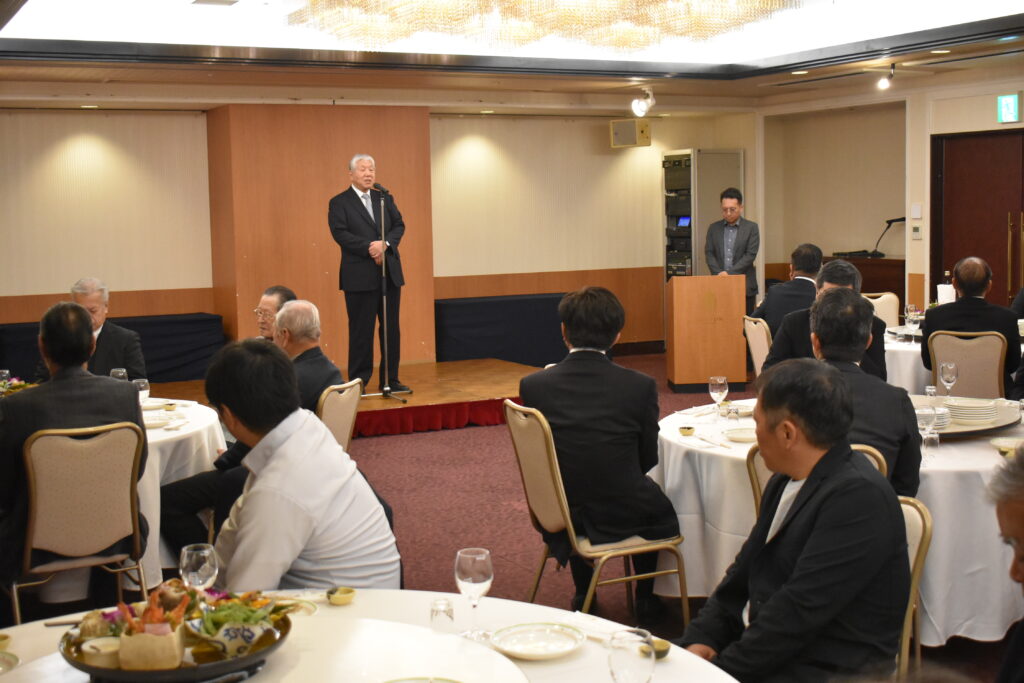 理事長の挨拶、そして鹿児島県中小企業団体中央会 福山賢志様に乾杯の挨拶をいただきました。